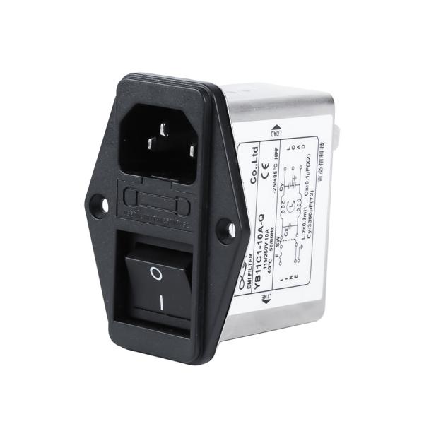 YB11C1-10A-Q is the Power Entry Modules Filter, its components include IEC socket, switch, fuse, filter circuit, metal shell five parts